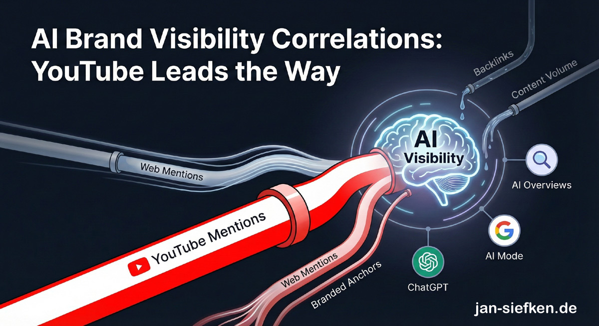 Studie über KI-Sichtbarkeit zeigt: YouTube-Mentions sind der Top-Faktor für Sichtbarkeit in ChatGPT & AI Overviews – wichtiger als Backlinks oder Content-Menge.